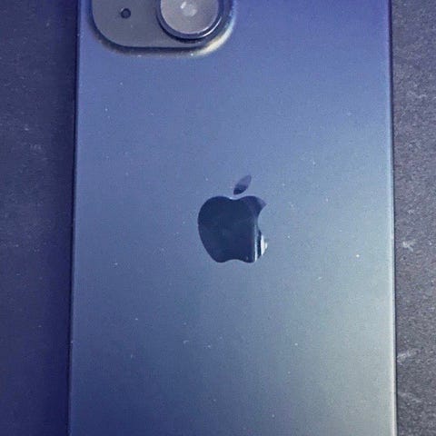 Apple iPhone 15 mobiltelefon med 128 GB lagringsutrymme. Produkten är i färgen silver ljusblå och levereras med originalförpackning och ett svart skyddsfodral. Batterihälsa86%. Ingen laddkabel eller laddare medföljer.