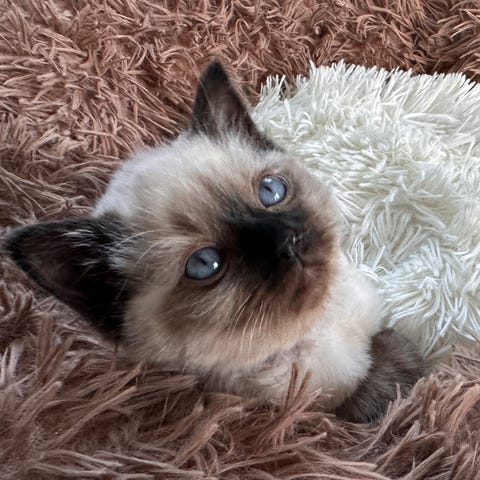 Så lugn och fin personlighet som gärna ligger brevid i soffan och myser o blir klappad.