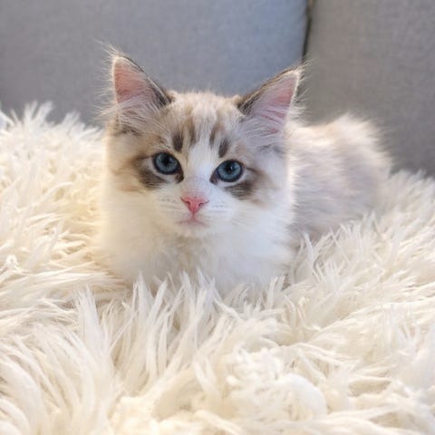 Vår fina Ragdoll hona med stamtavla måste tyvärr flytta på grund av allergi. Hon är 5 år gammal och har haft en kull fina ungar som hon skötte med bravur.