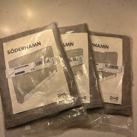 Superfint överdrag till IKEA Söderhamn tresits inklusive armstöd. Från Bemz, färg Velvet feather, sammet med ”kappa” enligt bild. Nypris 6799 kr. Finns i Gustavsberg eller skickas mot frakt! Självklart nytvättat om så önskas.