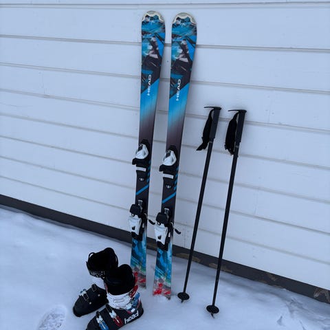 Skidor som har mer att ge ett annat barn. Inga fel eller direkta defekter förutom normalt slitage. Längd 97 cm.