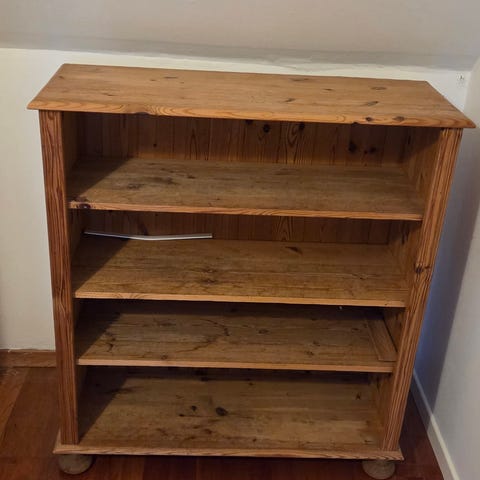 Bokhylla - hylla - förvaring av furu. Den består av 6 sektioner -delar som går att sätta samman hur du vill. Bilderna visar ett exempel. Det finns 4 dörrar med glas och 4 dörrar utan glas. Hyllan består av fyra stycken sektioner på 84 cm x 84 cm vardera och två sektioner på 84 cm x 43 cm.