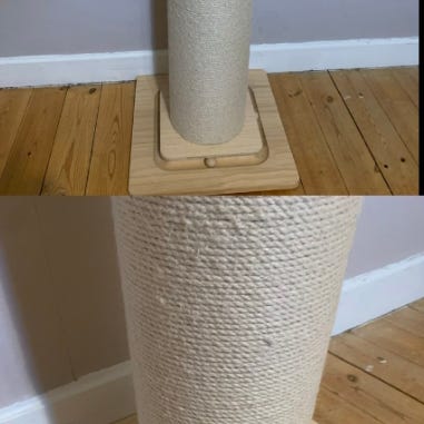 Väldigt fint och unikt kattträd i lagom men stor storlek. Stabilt och rejält med hängande gunga som många katter älskar. Perfekt för både lek och vila. Snyggare än vanliga standardkattträd och smälter bra in i hemmet. Använt men i mycket fint skick.Fast pris. Gratis leverans inom Östergötland eller också hämtas på plats i Norrköping. Först till kvarn!