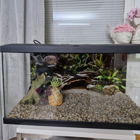 Säljes med 2st leddy lampor, mini pat pump, doppvärmare, glaslock, akvarie matta och inredning! Alger förekommer samt sniglar. Köptes i våras.
