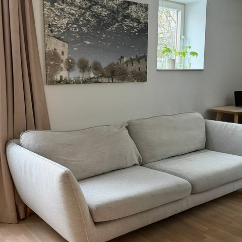 Säljer vår 3-sits soffa från Mio av modellen Madison Lux. Beige färg. Överlag bra skick men lite nopprig på vissa ställen. Tyget på dynerna är tvättbara.