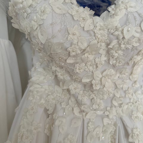 Säljer min fina brudklänning. Skräddarsydd klänning passar dig som är en 32-36 är spänningsbar mha korsett baktill