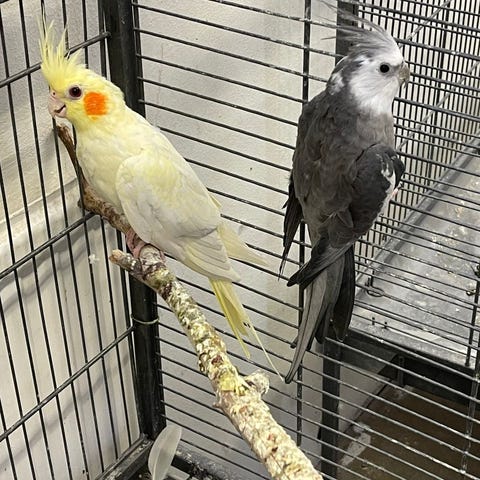 Den vita är en hona (albino) och den gula är en hane (lutino).