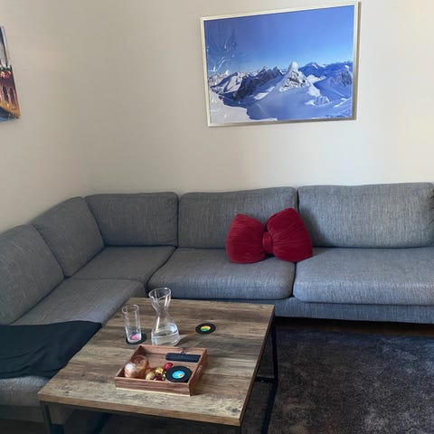 Soffan och bord är från Mio och köptes 2019.