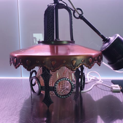 Större dekorativ taklampa i handflätat bambu/naturmaterial.