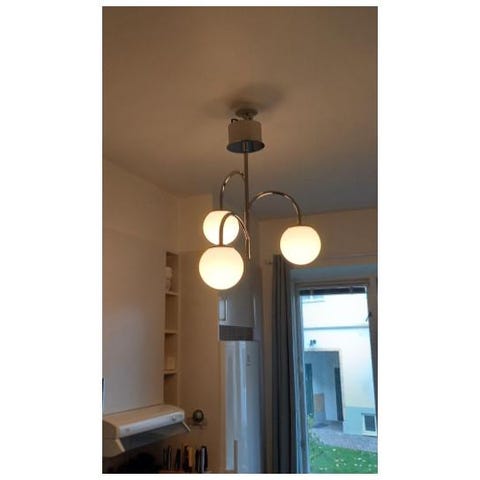Lampan är i jättefint skick, hel och ren samt kommer från ett rök- och djurfritt hem. Medföljer gör även en komplett upphängning samt lampa, alltså bara att plugga in.