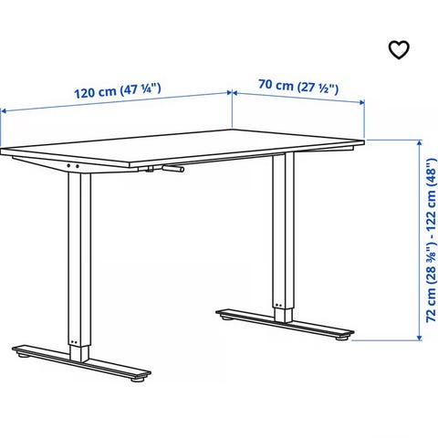 Beige bordsyta. Höj/sänkbar med vev.
