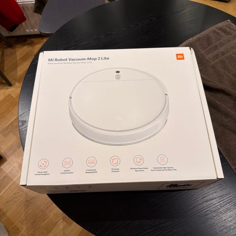 Xiaomi Robot s12 dammsugare i vit färg. Produkten är en robotdammsugare som automatiserar rengöring av golvytor. Den har en rund form och är utrustad med sensorer för navigering.