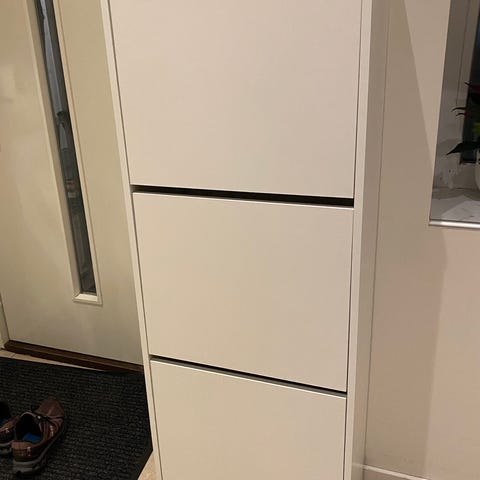 Säljer två skoskåp från Ikea som är inköpta hösten 2024. Slitage syns på bilderna. Inköpspriset är 399 kr/st men jag säljer båda för 300 kr tillsammans!