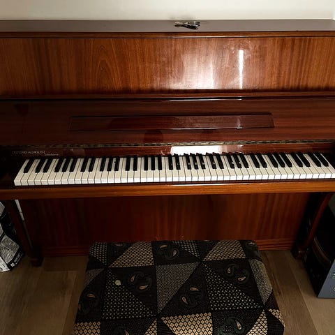 Akustiskt piano av märket Weinbach i fungerande skick. Klassiskt upprätt piano med varm klang, passar både nybörjare och den som vill ha ett riktigt piano hemma. Normalt bruksslitage.