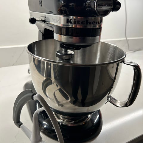 KitchenAid Artisan vattenkokare i svart färg. Utrustad med en termometer för temperaturkontroll. Handtag i metall och plast. Passar för uppvärmning av vatten i köket.