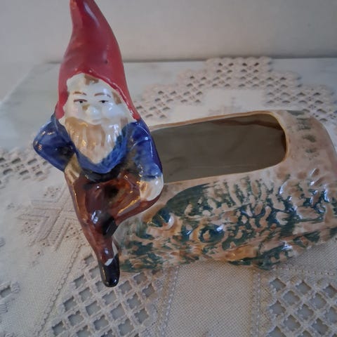 Tomte med säck. Ca 15cm hög. Som ny.