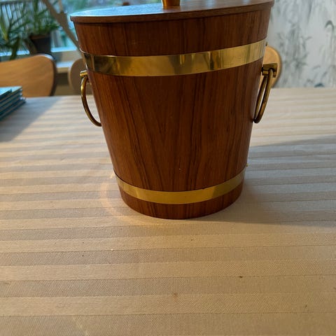 Ishink/Isbehållare i rostfritt stål med plastinsats och lock samt tång.