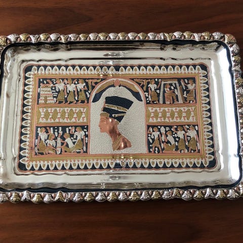 Stor serveringsbricka i mangoträ från H&M Home. Oanvänd och legat i förpackning sedan köp. Inga anmärkningar. Serveringsbrickan har asymmetrisk form, låg kant och hängare upptill. Nypris låg på 449kr. Säljes för 350kr