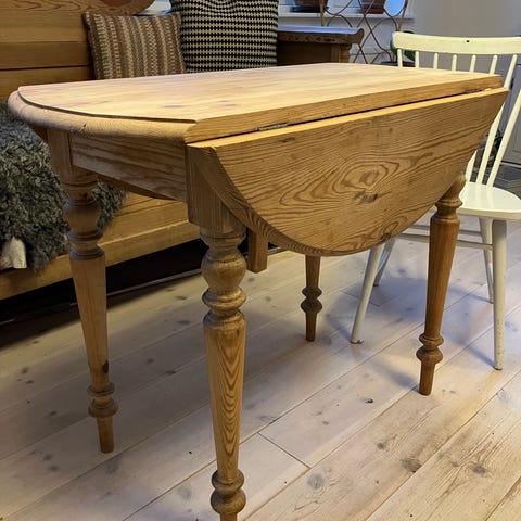Slipat till originalträ och lackat.