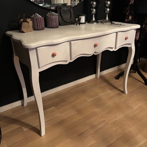 Ikea Malm sminkbord med spegel i vitt utförande. Bordet har en enkel design med en låda för förvaring. Och en glas skiva över sig. Spegeln har en dekorativ ram med mönster. Passar för användning som sminkbord eller skrivbord i hemmiljö. Säljes ihop eller separat.