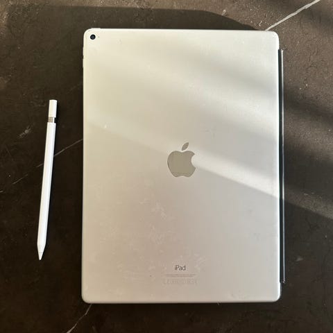 Apple iPad Pro surfplatta med 128 GB lagringsutrymme. Enheten har en skärm i färgen grå