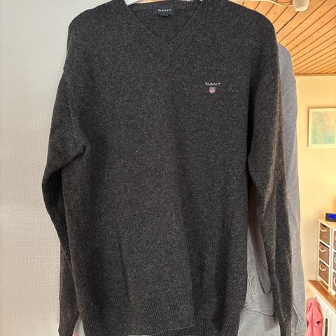GANT tröja för herr i storlek L, grå färg och tillverkad i bomull. Tröjan har en amerikansk flagga som detalj på framsidan.