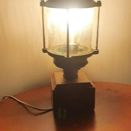 Hamnlanterna från tidigt 1900-tal. Kraftig konstruktion i plåt med original ribbat Fresnel-/prismaglas. Ursprungligen för fotogen/gas men senare omgjord till el (och nu med helt ny el). Äldre bruksskick med naturlig patina. Rödfärgad glödlampa ingår.