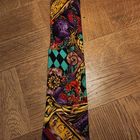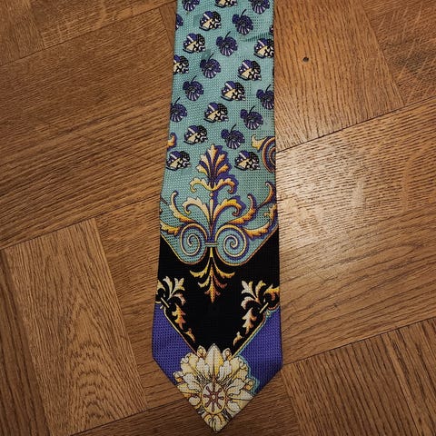 Detta är en vintage Gianni Versace silkesslips från ca 1990-talet.