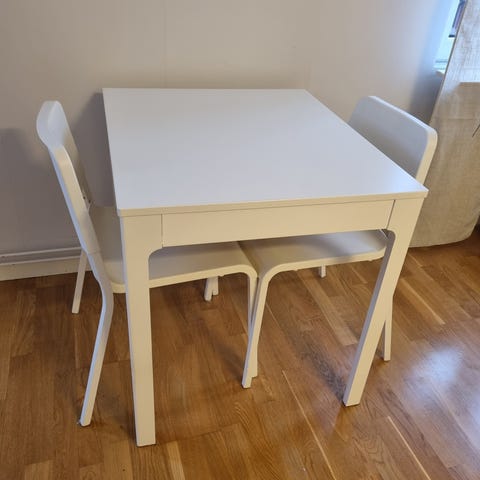Matbord mått 74x74 med 2 stolar i nyskick,