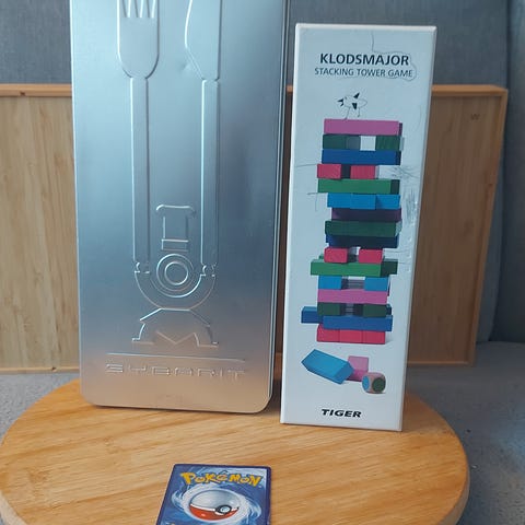 Kartongen visar normalt bruksslitage, men innehållet är i gott skick.