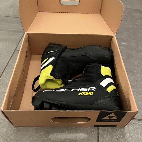 Fischer Ultimate längdskidpjäxor i svart färg, storlek EU 25. Pjäxorna har en dragkedja framtill för att hålla rent från snö.
