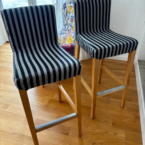 Här finns två stycken barstolar. Färg: svart. Mått ca: 75 cm hög (till sitsen). Pris per st, säljes tillsammans.