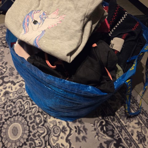 Klädpaket tjej str 116 olika märke 2x ribbad tröja byxor 3x topp