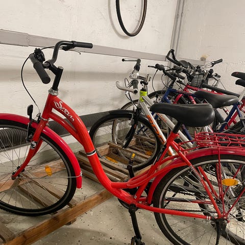 Inga skador vad jag kan se mer än någon repa från vurpor. Jag köpte en för liten cykel så den är enbart använd en del av en säsong av ett barn.