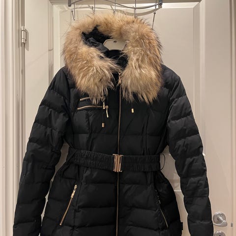 Säljer min hollies jacka i äkta päls i storlek XS. Jackan är i bra skick förutom att det metal biten som man drar upp dragkedjan med är lite i sönder. Annars är jackan i fint skick.