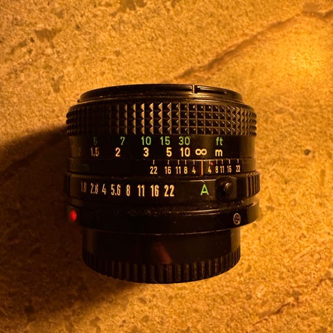 Ger en väldigt speciell look och mjuk bokeh vid f/0.95. Stabil metallkonstruktion.