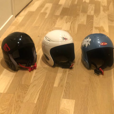 3 st hjälmar för skidåkning.