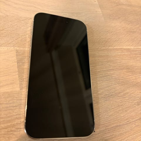 Apple iPhone 14 Pro mobiltelefon med 128 GB lagringskapacitet i space black färg. Produkten inkluderar originalförpackning, en extra oanvänd 1 m och en 3 m laddningskabel samt ett oanvänt svart skyddsfodral.