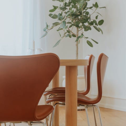 Arne Jacobsen Sjuan kontorsstol helklädd i skinn.