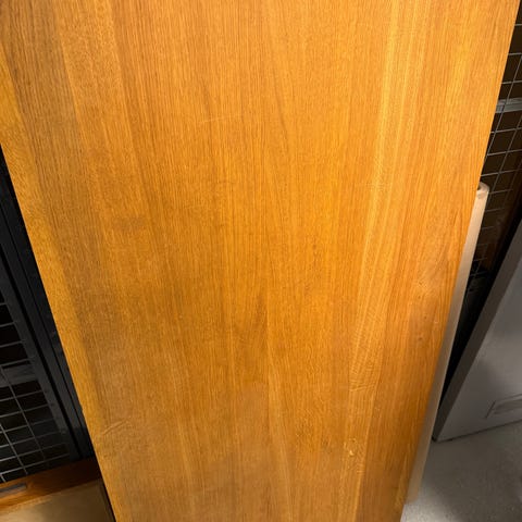 Stilrent och stabilt skrivbord i ekfanér. Några mindre blessyrer på ovansidan men annars i väldigt gott skick.