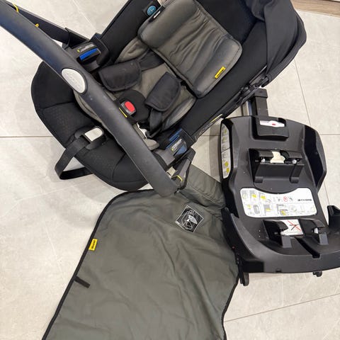 Doona Babyskydd. Går att använda som vagn och bilbarnstol. Godkänd att flyga med. I använt skick men fullt fungerande.