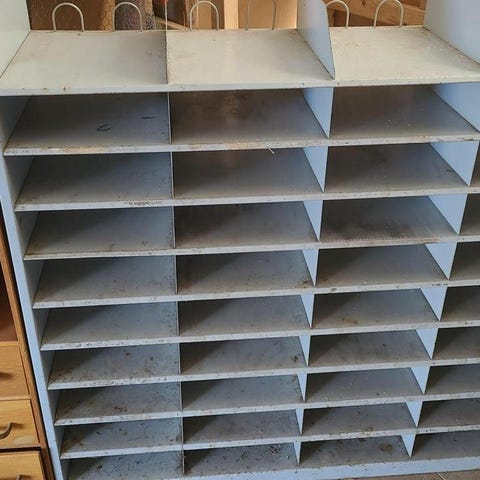 Trähylla med 36 fack