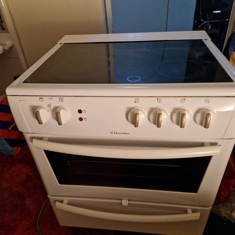 Electrolux glaskeramikspis 60 cm bredd ,,höjd -90 cm ,Späning 400v /3 fass ,Varmluft luft finns ,fungerar mycket bra, begagnad skick , spisen år Fräsch . Min tel .0735301468, jag kann hjälpa med transport.