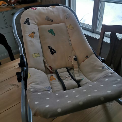 Babysitter från Maxi Cosi som kan va i gungande läge eller fälla upp stödbenen så den blir mer uppåtsittande.