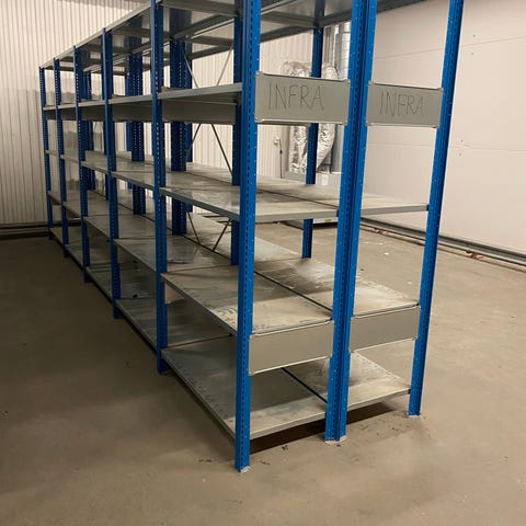 Trähylla med fem hyllplan, tillverkad i trä. Passar för förvaring av olika föremål i hemmet eller kontoret.Lundqvist hyllor