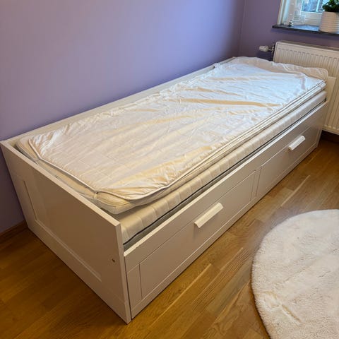 Flottebo dagbädd grått tyg förvaring under bädden.