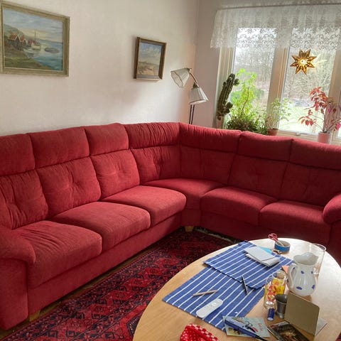 Stor och mysig hörnsoffa, säljes då den inte får plats i vårt nya boende.
