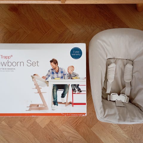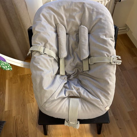 Bebisinsats till Tripp trapp stol i jättefint skick! Extra vändbart överdrag med hjärtan och leksaksbåge medföljer.