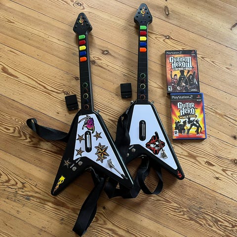 Guitar Hero. Inte helt komplett. De delar som finns är på bilderna