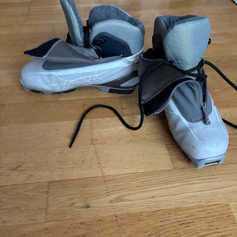 Madshus Hyper Pro skidpjäxor i svart och röd färg, storlek 36. Pjäxorna är utformade för längdskidåkning med ett greppvänligt yttersula och snörning med dragkedja för säker passform.